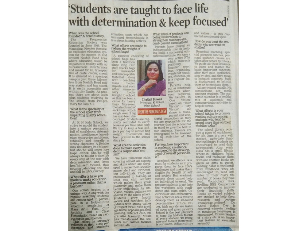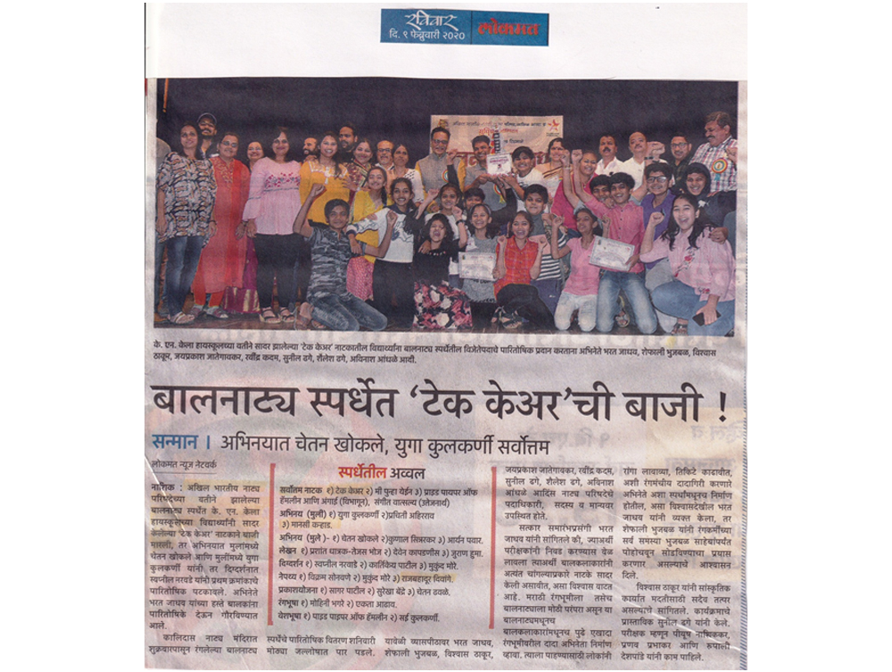 - Lokmat Times Campus Club organised inter-school Science exhibition on the topic ‘City Waste management.’ Many schools participated in it and K.N.Kela School stood 1st in the competition.